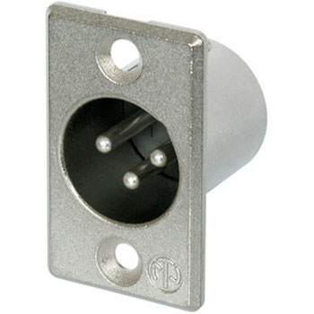 3 pole male receptacle, solder cups, black metal housing, silver contacts. Universal D-size metal body XLR panel mount series. UL recognized component. By Neutrik.