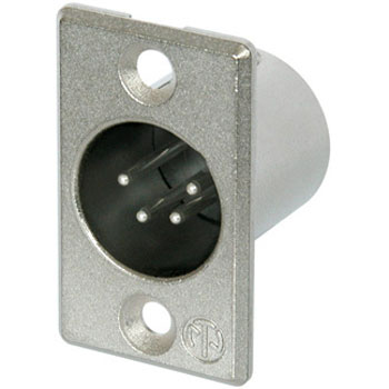 Neutrik 4 pole male receptacle, solder contacts, Nickel housing, silver contacts. Smallest available traditional style metal panel mount connector with large solder cups for ease hard wiring. By Neutrik.