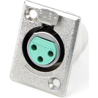 3-pin panel mount XLR connector, female. By Switchcraft.