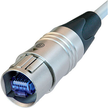 EtherCon Preassembled CAT6 patch cable with a robust cable plug carrier in 1m, 3m, 5m, or 10m. The preassembled EtherCon CAT6 patch cables use a shielded S/FTP cable with cable plug carrier offering a robust metal shell and Push-Pull locking system. By Neutrik.