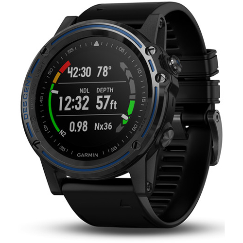 Garmin Descent Mk1, Gray Sapphire with Black Band - Versatile GPS Dive Computer for Your Diving Adventures. Whether you dive with or without tanks, in saltwater or fresh water, breathing nitrox, trimix or holding your breath - Descent Mk1 is the intuitive, do-it-all dive computer you've been waiting for. It's the first watch-sized dive computer to offer surface GPS navigation with full-color onscreen mapping and location reference - so you can easily mark your dive entry and exit points. Once underwater, the proven Bühlmann ZHL-16c algorithm makes sure you're staying within your dive limits. Selectable tone and vibration alerts help keep you informed while you're submerged. Returning topside, Descent Mk1 also functions as a robust training companion, offering the best features of our fēnix 5X ultimate multisport GPS watch, including smart notifications to help you stay in touch on the go. What's more, the Descent Mk1 design is so sleek, comfortable and elegantly crafted, you'll want to wear it as your everyday timepiece. By Garmin.