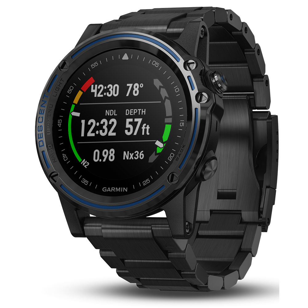 Garmin Descent Mk1, Gray Sapphire with DLC Titanium Band - Versatile GPS Dive Computer for Your Diving Adventures. Whether you dive with or without tanks, in saltwater or fresh water, breathing nitrox, trimix or holding your breath - Descent Mk1 is the intuitive, do-it-all dive computer you've been waiting for. It's the first watch-sized dive computer to offer surface GPS navigation with full-color onscreen mapping and location reference - so you can easily mark your dive entry and exit points. Once underwater, the proven Bühlmann ZHL-16c algorithm makes sure you're staying within your dive limits. Selectable tone and vibration alerts help keep you informed while you're submerged. Returning topside, Descent Mk1 also functions as a robust training companion, offering the best features of our fēnix 5X ultimate multisport GPS watch, including smart notifications to help you stay in touch on the go. What's more, the Descent Mk1 design is so sleek, comfortable and elegantly crafted, you'll want to wear it as your everyday timepiece. By Garmin.