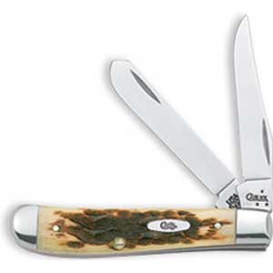Case 6027 SS Amber Bone Mini Trapper. Clip and Spey Blades, 3 1/2" closed; 2 oz. By W.R. Case & Sons.