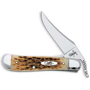 Case 61953L SS Amber Bone Russlock Knife. One-Hand Opening Clip Blade, 4 1/4" closed; 2.7 oz. By W.R. Case & Sons.