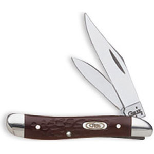 Case 6220 SS Brown Synthetic Peanut Working Knife. Clip and Pen Blades, 2 7/8" closed; 1.2 oz. By W.R. Case & Sons.