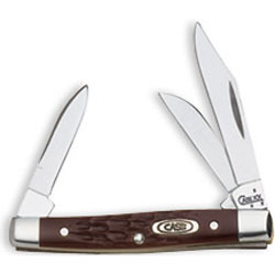 Case 6333 SS Brown Synthetic Small Stockman Knife. Clip, Sheepfoot and Pen Blades, 2 5/8" closed; 1.1 oz. By W.R. Case & Sons.
