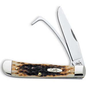 Case 6254HP SS Amber bone Equestrian Knife. Clip Blade and Hoof Pick, 4 1/8" closed; 4.4 oz. By W.R. Case & Sons.