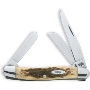 Case 6318 CV Amber bone Medium Stockman Knife. Clip, Spey and Sheepfoot Blades, 3 5/8" closed; 2.5 oz. By W.R. Case & Sons.