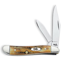 Case 5220 SS Genuine Stag Peanut Knife. Clip and Pen Blades, 2 7/8" closed; 1.2 oz. By W.R. Case & Sons.