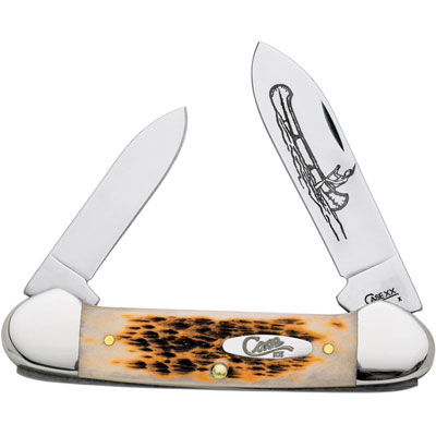 Case 62131 CV Amber Canoe. Spear and Pen Blades, 3 5/8" closed; 2.9 oz. By W.R. Case & Sons.