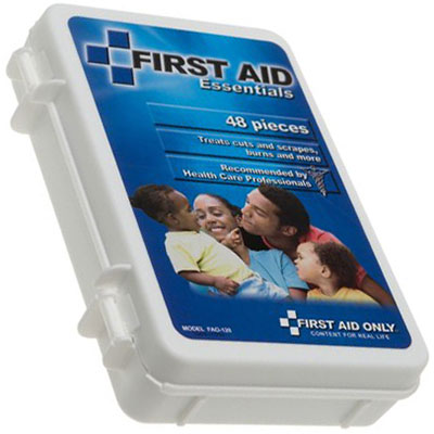 All Purpose First Aid Kit, 48 pc - Small. Be ready for all potential emergencies at home, in the car, outdoors or on the water. From cuts and stings to minor aches and pains, this kit prepares you for those small everyday emergencies. Fits easily into a purse, pocket, school bag or glove compartment. By First Aid Only.