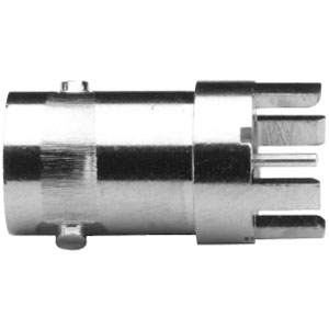 BNC PCB Receptacle (Jack), Post Terminal, 4 Legs, .433" (11.0mm) Dia. Base. By Amphenol RF.