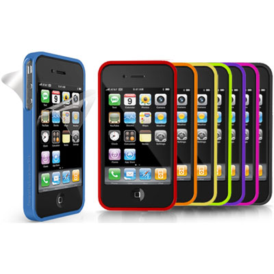iLuv ICC700 Edge Silicone Trim Case with dual films for iPhone 4G. Color available in blue, green, orange, red, yellow. By iLuv.