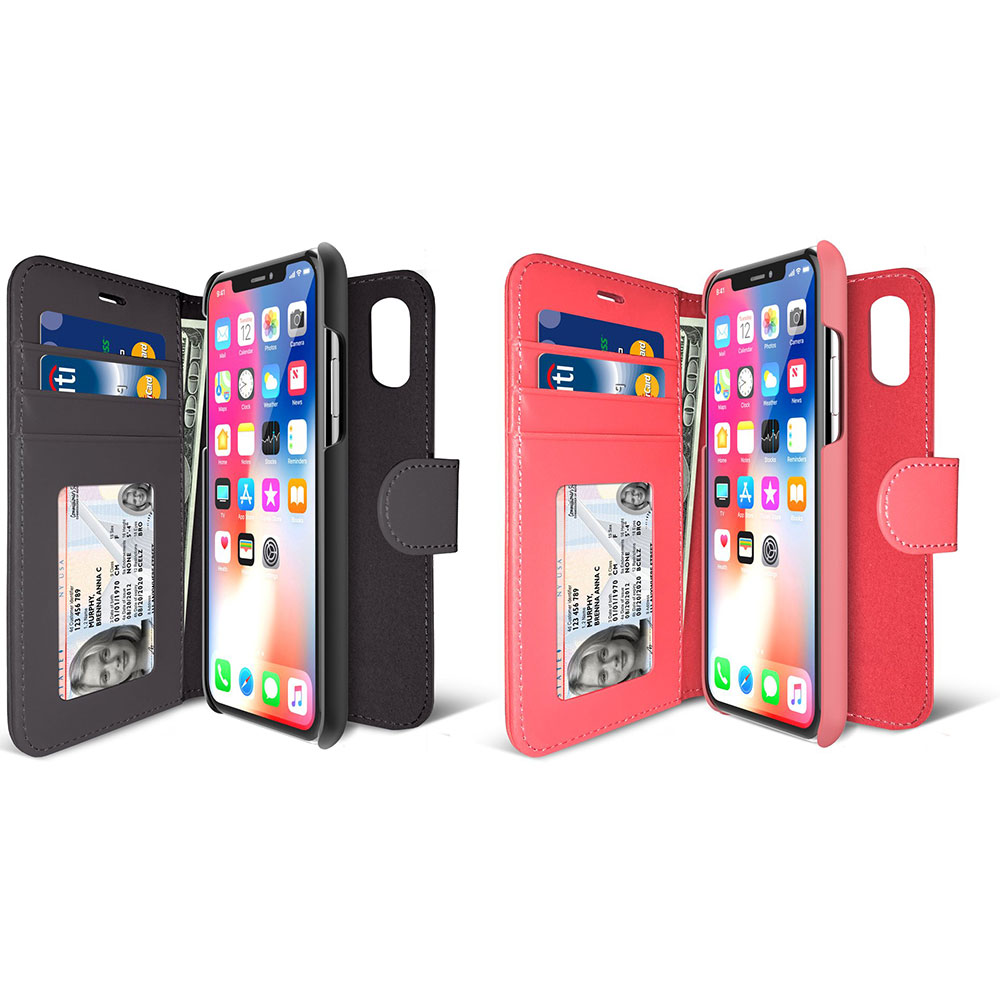 iLuv AIXDIAR iPhone X Premium Wallet Case with Detachable Durable Hardshell Slim Case, 2 Credit Card Slots, One ID Window, One Money Pocket, Foldable Stand, 360 Degree Protection, and Magnet Closure. If you have carried an iPhone case and a wallet respectively, now it is time to change. This folio case can do it all. If you want, you can even use the inner detachable hardshell case with magnet as a separate stand-alone case product. While it protects your iPhone X from all 360 degree angles, it also provides two credit card slots, one ID window, and one main pocket for money. A magnet closure keeps your valuables safe yet easily accessible. You can also talk over the phone with flip cover closed. Do not let others see your credential information of ID and credit card. By iLuv.