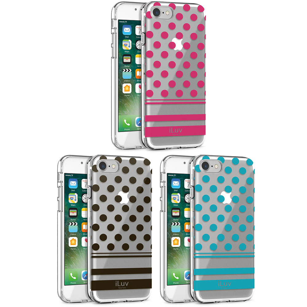 iLuv AI7DOT iPhone 8 / iPhone 7 Dual Material Protective Case with Dot Patterned Hard Plastic Clear Back, Soft TPU Frame, Ultra-thin Lightweight Design, Raised Lip on Front, and Access. As you always carry your iPhone with you, you may want to have a case with attractive design. DotStyle case with polka dot pattern gives you an elegant and stylish design. Featuring a polycarbonate (PC) base and a soft thermoplastic polyurethane (TPU) frame around the edges, DotStyle keeps your phone safe from dings, scratches and dents. Raised lip keeps your iPhone's screen from touching any surfaces and protects the screen from accidental drop. Its package also include harm-free anti-mold chip made from recycled material instead of silica gel preserving our environment. By iLuv.