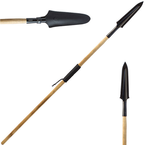 Condor CTK1016-14.5HC Yari Spear. 2.5 MM 1075 high carbon steel 14 1/2" blade, epoxy black powder coating blade, burnt American Ash with wrapped paracord handle, hand crafted welted leather sheath. By Condor Tools and Knives.