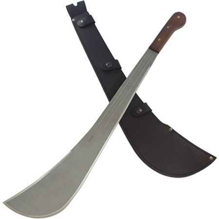The Condor CTK2090SHC Viking Machete. 2.5 MM 1075 high carbon steel blasted satin 20" blade, walnut handle, black leather sheath. By Condor Tools and Knives.