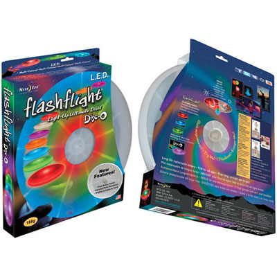 With its innovative design and super-bright illumination, our Flashflight L.E.D. light-up flying disc is suitable for serious sport. It's also an incredibly fun toy. The Nite Ize Flashflight Disc-o LED was designed by a professional Ultimate player, so it performs beautifully. Made of lightweight, durable materials, with true balance and long, straight flight, it weighs in at 185 grams and looks, feels, and flies like the highest quality non-illuminated discs. In other words, you'll want to reach for it even during the day. But at night, with a simple press of the switch, the Flashflight lights up with a long-life (100,000 hours) patented L.E.D. fiber-optic array that extends to its rim, so the entire disc is illuminated from every angle. It provides endless hours of nighttime entertainment, for everyone from the serious athlete to your crazy Uncle Max. Great for lawn, park, and beach games, it’s water-resistant and comes with an easily replaceable, long-life battery. By Nite Ize.