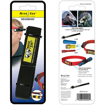 The Nite Ize Headband is designed to hold AAA, AA, or L123 Flashlights effectively and easily while freeing both your hands. By Nite Ize.