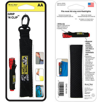 Made of sharkskin neoprene, the Nite Ize Grip 'n Clip is a specially designed sleeve that slips over any AA cell flashlight, making it easy to carry both on your belt and in your hand. One side features a strong utility clip that attaches securely to belts or storage hooks, and the other has an adjustable strap that slides over the top of your hand to quickly provide a more secure grip - allowing you to actually let go of the flashlight without dropping it. (Especially useful for jobs that require intermittent or extended illumination.). By Nite Ize.