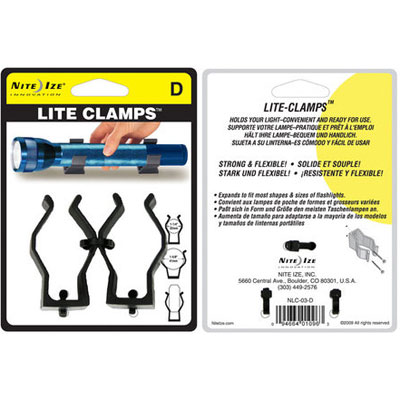 Nite Ize Lite Clamps (for D cell flashlights) are designed to accommodate many different shapes and sizes of flashlights for the same purpose: keeping them securely mounted in the location of your choice. Molded from strong DuPont Delrin acetal resin material, Lite Clamps are virtually indestructible, reliably flexible, and unaffected by extreme hot and cold temperatures. Their small, compact size allows you to organize and store your flashlights neatly and securely, keeping your workspace efficient and tidy. By Nite Ize.
