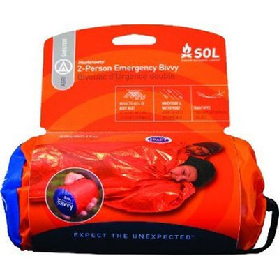 SOL Series 2-Person Emergency Bivvy Sleeping Bag. The SOL Emergency Bivvy is made from the same heat-reflective polyethylene as AMK's world-famous emergency blankets (reflecting 90% of your body heat back to you), with the added benefit of being fully sealed so that no wind, rain, or snow can get inside. If you're forced to spend the unexpected night outdoors, hop in the SOL Emergency Bivvy as soon as the temperature drops and instantly improve the odds in your favor. By Genuine First Aid.