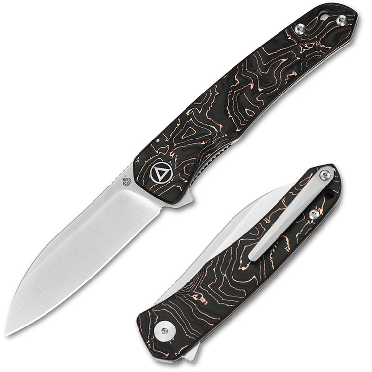 QS140-B1 Otter Series Pocket Knife, S35VN Blade, Satin Finish, Copper Foil Carbon Fiber Handle. By QSP Knife.