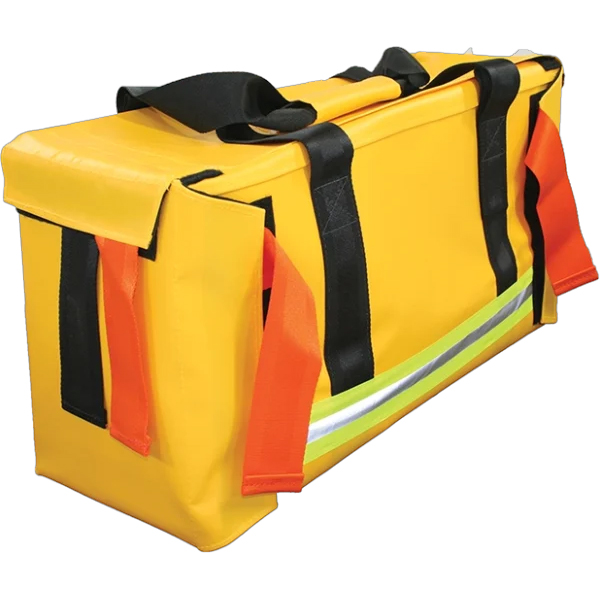 Medium FORESTRY HOSE PACK #M/S102 Pack and carry 200’ of 1” forestry hose. Two removable divided internal compartments and rigid sidewall and base reinforcements keep hoses organized and ready to deploy quickly. This is made using 22 oz. vinyl, is available in yellow and weighs 136 oz. The overall dimensions are 22”L x 7 1/2”W x 12”H. By R&B Fabrications.