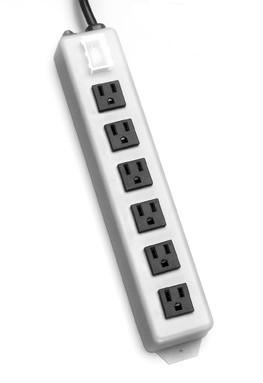 The 6SP power strip offers a convenient method of power distribution in workbench, wall-mount or floor mount applications. Includes 6 NEMA 5-15R output receptacles with 1.625 inch center-to-center spacing, 6’ AC line cord and keyhole mounting tabs for installation in a wide variety of applications. Corded, multi-outlet strip reduces cabling clutter and enables the connection of multiple electrical devices to a single AC wall socket. By Tripp Lite.
