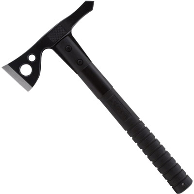 The SOG FastHawk F06T-N is faster, lighter, more agile, and easier to carry than its sibling the Tactical Tomahawk. This is not to say it is not still powerful, versatile, and functional. It is a tool that will be used for much more than you might anticipate. Chopping, breaking, cutting, hammering, piercing, digging, prying, pounding shaving, notching, opening and throwing are all capabilities well within the FastHawk's reach. The 420 stainless steel head with a Hardcased black coating is mounted to the ballistic polymer handle with heavy-duty bolts and a steel ferrule to insure the strongest integrity. Side hammer checkering insures precision placement when swinging. Carried in a nylon sheath that can be mounted to belt, backpack, or gear. It is a universal tool for modern man. By SOG Knives.