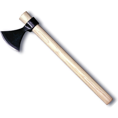 Capturing the Viking spirit, the Norse Hawk's 4" blade features a highly curved cutting edge and terminates in two sharp points. These points increase the chance of a stick when the Norse Hawk is thrown. By Cold Steel.