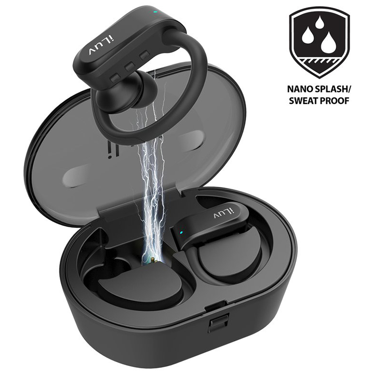 iLuv FitActive Jet 5, True Wireless Stereo in-Ear Fitness Earbuds with Ear Hooks, Charging Case, HD Sound, 15 Hour Total Play Time, Ergonomic Design, Nano Splash Sweat Proof, and Hands-Free Talking. iLuv is the premier provider of the most comprehensive line of accessories for the mobile lifestyle. By providing a constant stream of new and innovative products with quality and value, iLuv is the perfect selection for all of your mobile lifestyle needs. By iLuv.
