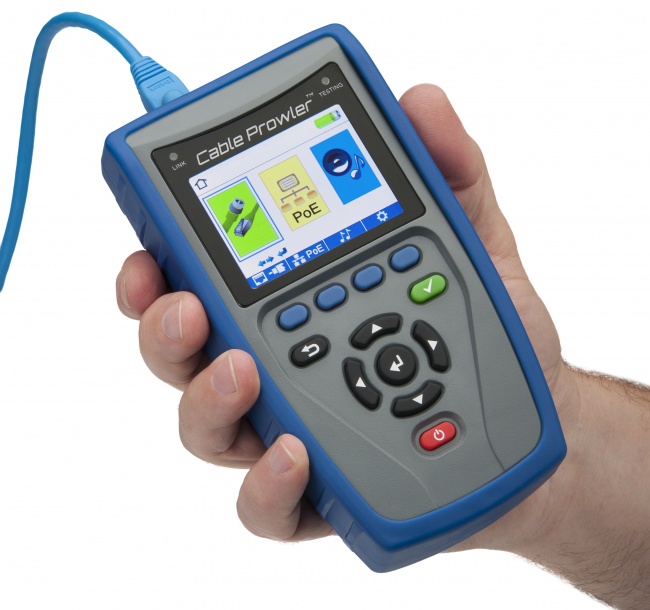 Cable Prowler Cable Tester Test Kit TCB300 - The Cable Prowler combines network testing (physical layer and link), cable verification & troubleshooting and PoE voltage testing in a handheld tester with a full-color display; all with the capability of saving and printing tests results from a personal computer. By Paladin.