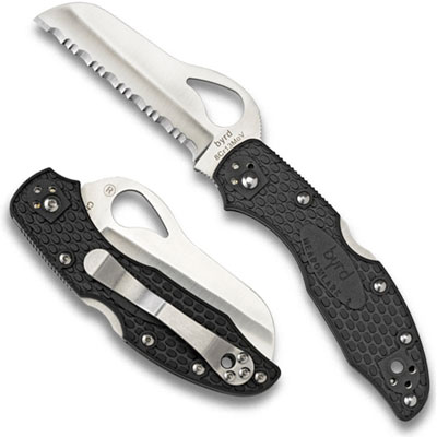 The newly updated Meadowlark Rescue offers lifesaving performance at a very affordable price. Its skeletonized stainless steel liners and textured, injection-molded FRN handles provide the ideal combination of light weight and a secure grip, even in the most demanding environmental conditions. A new flat-ground, fully-serrated sheepfoot blade provides improved edge geometry and cutting performance while protecting against accidental punctures. By Spyderco.