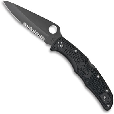 Spyderco C10PSBBK Endura 4 Lightweight All Black. This version of the popular Endura4 has a non-reflective VG-10 blade that is coated with black titanium carbonitride and is flat saber-ground, has a strong tip and large 13mm opening hole. By Spyderco.