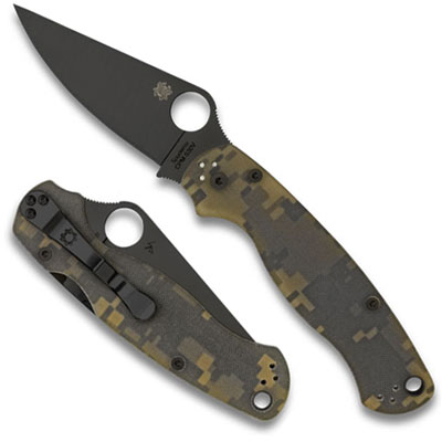 Spyderco Para-Military 2 Digital Black Blade Camouflage G-10 C81GPCMOBK2, plain edge. By Spyderco.