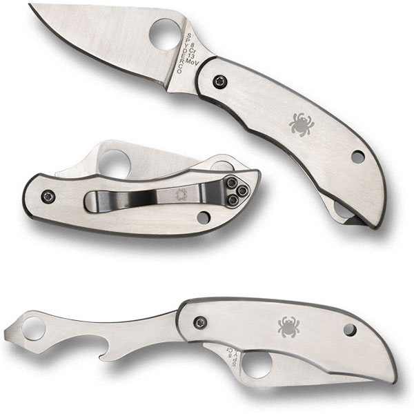Spyderco C175P Clipitool with Screwdriver and Opener. Spyderco's ClipiTools are a special breed of tool that combine a high-performance cutting edge with the added convenience and functionality of other tools - all in a pocket-friendly, clip-carried package that keeps them instantly accessible. ClipiTools feature precision all-stainless-steel construction with superior fit, finish, and attention to detail. They all feature a non-locking primary blade with broad, full-flat-ground profile for superior cutting performance. A forefinger choil (finger groove) at the base of the blade protects against accidental closure during use and ensures a secure, easily controlled grip. The ClipiTool Bottle Opener and Screwdriver features a convenient folding bottle opener that also doubles as a flat-blade screwdriver. Both it and the tool's knife blade include Spyderco's Trademark Round Hole for easy two-handed opening without fear of breaking a fingernail.By Spyderco.