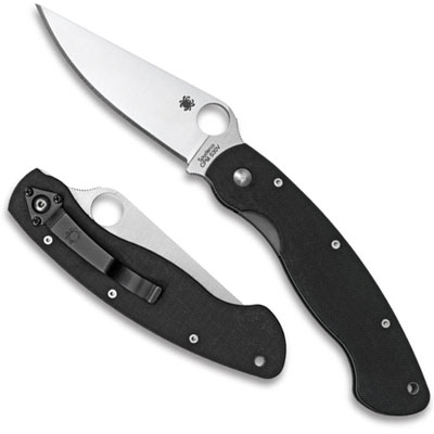 The C36GE (Military Model) features machined texturing on the spine behind the hole for a very comfortable and safe grip. Available in right hand model (C36GPE) or left hand model (C36GPLE). By Spyderco.