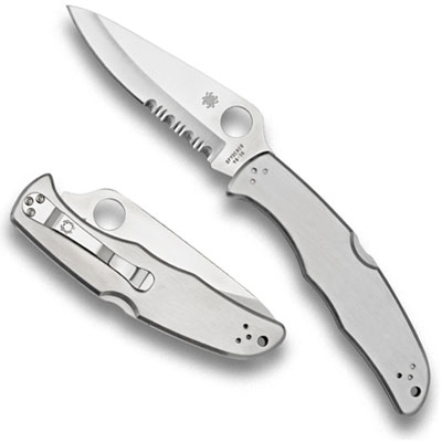 The C10 stainless Endura 4, fills your palm with a handful of steel yet doesn't seem weighty or unwieldy. Knife Knuts who prefer something heavier and stouter seem to gravitate to steel handled knives. Since the handle surface is flat and smooth it offers an ideal palette for engraving or personalizing your knife. By Spyderco.