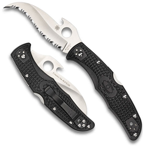 Spyderco Matriarch2 with Emerson Opener Feature, unique S Blade shape, Black FRN-SpyderEdge. The Matriarch2 combines the extraordinary cutting power of our Reverse "S" blade profile and SpyderEdge serrations with the blindingly fast deployment speed of the patented Emerson Opening feature. The result is an amazingly swift and potent cutting tool that is ready for anything. As the knife is drawn from tip-up carry, the Emerson Opener snags on the mouth of the pocket and automatically opens the blade as it clears the pocket. Originally developed by renowned knifemaker Ernest Emerson, Spyderco is licensed to incorporate this remarkable feature into selected Spyderco designs. By Spyderco.