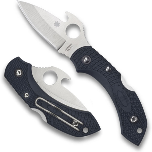 Spyderco C28PGYW2 Dragonfly 2 Emerson Opener. One of the tradeoffs of compact knives is that they are somewhat more challenging to deploy one handed. The new Dragonfly 2 Emerson Opener solves that problem by enhancing the popular Dragonfly 2 Lightweight with an Emerson Opener -- an integral hook that snags the top of the pocket to automatically open the blade as the knife is drawn. Sporting a distinctive gray FRN handle with non-slip Bi-Directional Texturing, this high-speed version of the Dragonfly 2 proudly includes all the other defining features of this popular model. By Spyderco.