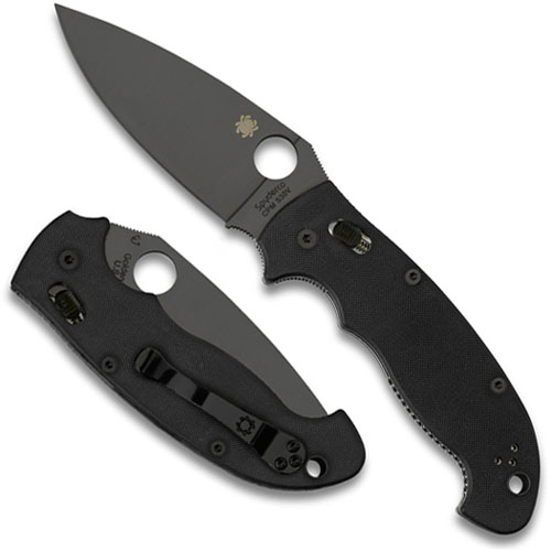 Spyderco C95GPBBK2 Manix2 XL Black G10 with Black Blade features a durable Diamond-Like Carbon (DLC) blade coating and blackened liners, clip, and handle hardware. These coatings provide a low-profile, non-reflective finish to the Manix2 XL, a design that combines the strength and convenience of Spyderco's patented Ball Bearing Lock with the formidable cutting power of the full-sized original Manix. By Spyderco.