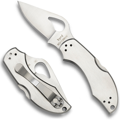 Byrd Robin 2 Knife, stainless steel handle. By Spyderco.