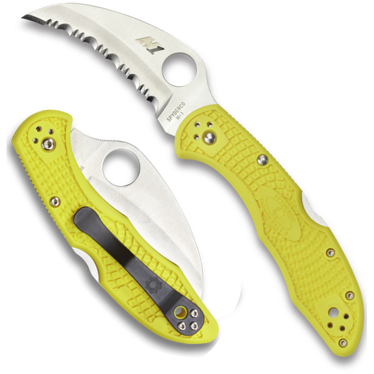 Spyderco's second-generation Tasman Salt 2 is a powerful fusion of a hawkbill blade profile, 100% rustproof H-1 blade steel, and an enhanced, injection-molded handle design. The result is an incredibly capable pocket-sized cutting tool that is ideal for anyone who works in or around the water. Available with either a PlainEdge or fully serrated SpyderEdge cutting edge, the radically curved hawkbill blade of the Tasman 2 literally collects the material it cuts, drawing it into the concave edge like an animal’s claw. This dynamic generates extreme cutting power, especially on fibrous, hard-to-cut materials like netting, line, webbing, and rope. The Tasman Salt 2's high-performance blade is housed in an improved handle design based on Spyderco's best-selling Delica 4. Injection molded from tough, ultra-lightweight yellow or black fiberglass-reinforced nylon (FRN), it features improved ergonomics, a non-slip Bi-Directional Texturing™ pattern, and a series of threaded stainless steel anchors for a versatile four-position titanium pocket clip. The handle is also home to a stout back lock mechanism that locks the blade securely open during use. A true pocket powerhouse, the Tasman Salt 2 sets a new standard in mariner’s cutting tools. By Spyderco.