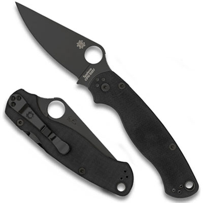 The C81GBK2 Para-Military2, black blade, black G-10 handle, plain edge. By Spyderco.