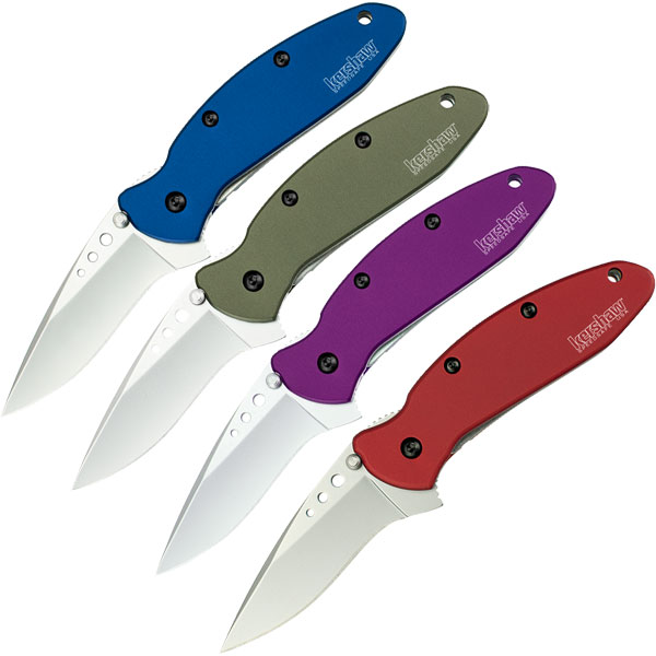 Scallion pocket-sized knife with removable pocket clip, Speed-Safe opening system and tip safety lock. Colors available in navy blue, olive drab, jewel tone purple. By Kershaw.