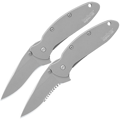 Scallion Frame Lock with removable pocket clip, patented speed-safe assisted ambidextrous index-finger opening, all stainless-steel construction, and tip safety lock. Plain edge. By Kershaw.