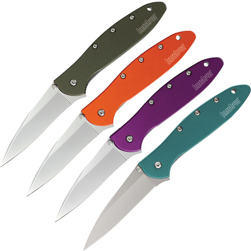Now your EDC-perfect Leek comes in different colors: Olive Drab, Orange, Jewel Tone Purple, Teal. Like other Leeks, this one features a task-ready 3-inch blade, slim, easy-to-carry design, and cutting versatility. The modified drop-point blade shape makes it a good slicing knife, while the slim tip gives it excellent piercing and detail work capabilities. Built of Sandvik 14C28N high-performance stainless steel, the Leek's blade comes razor sharp out of the box and holds its edge, too. Whether you're left-handed or right-handed, it's easy to open your Leek one-handed with SpeedSafe assisted opening. A simple pull back on the ambidextrous blade protrusion or push outward on the thumbstud and the Leek's blade is ready to go to work. By Kershaw.
