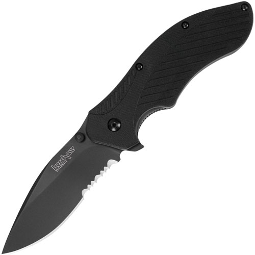 A drop-point blade with just a little recurve enables this multipurpose knife to excel at a wide variety of tasks, from slicing to rope cutting. It features a blade of 8CR13MoV stainless steel, which Kershaw heat-treats to ensure its strength, hardness, and ability to hold a keen edge. The Black Clash is SpeedSafe equipped and priced to be an excellent value. Handsome black-oxide blade coating and lightweight, black scales make it rock extra hard. By Kershaw.