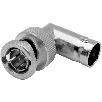 BNC 75 ohm Right Angle Plug to Jack Adapter. By Amphenol RF.